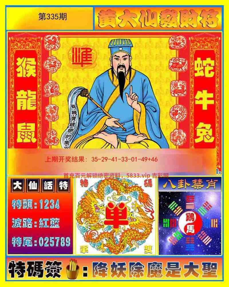 | 334期:三头中特【2头3头4头】开:猴46准 |